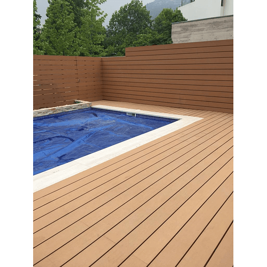 Nuestros deck son de alta calidad y el material es un compuesto de fibras naturales de madera en un 55%, polímeros plásticos en un 35% y 10% de aditivos químicos con filtro UV, Anti-fúngicos, colorantes, etc. Lo que le ofrece muchas ventajas respecto los deck de madera (Certificación Europea)
