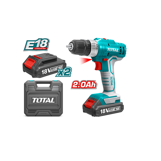 TALADRO PERCUTOR INALAMBRICO 18V INCLUYE 2 BATERIAS DE LITIO 2.0AH TDLI1801